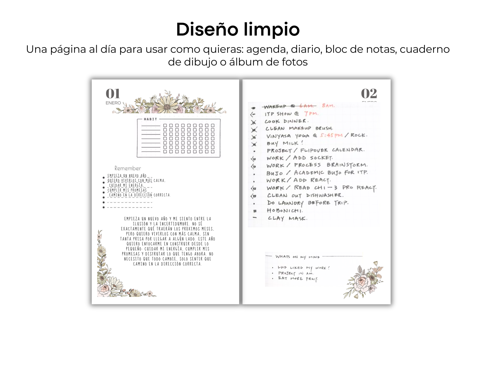 365 Espacios es una agenda limpia: solo la fecha, nada más.