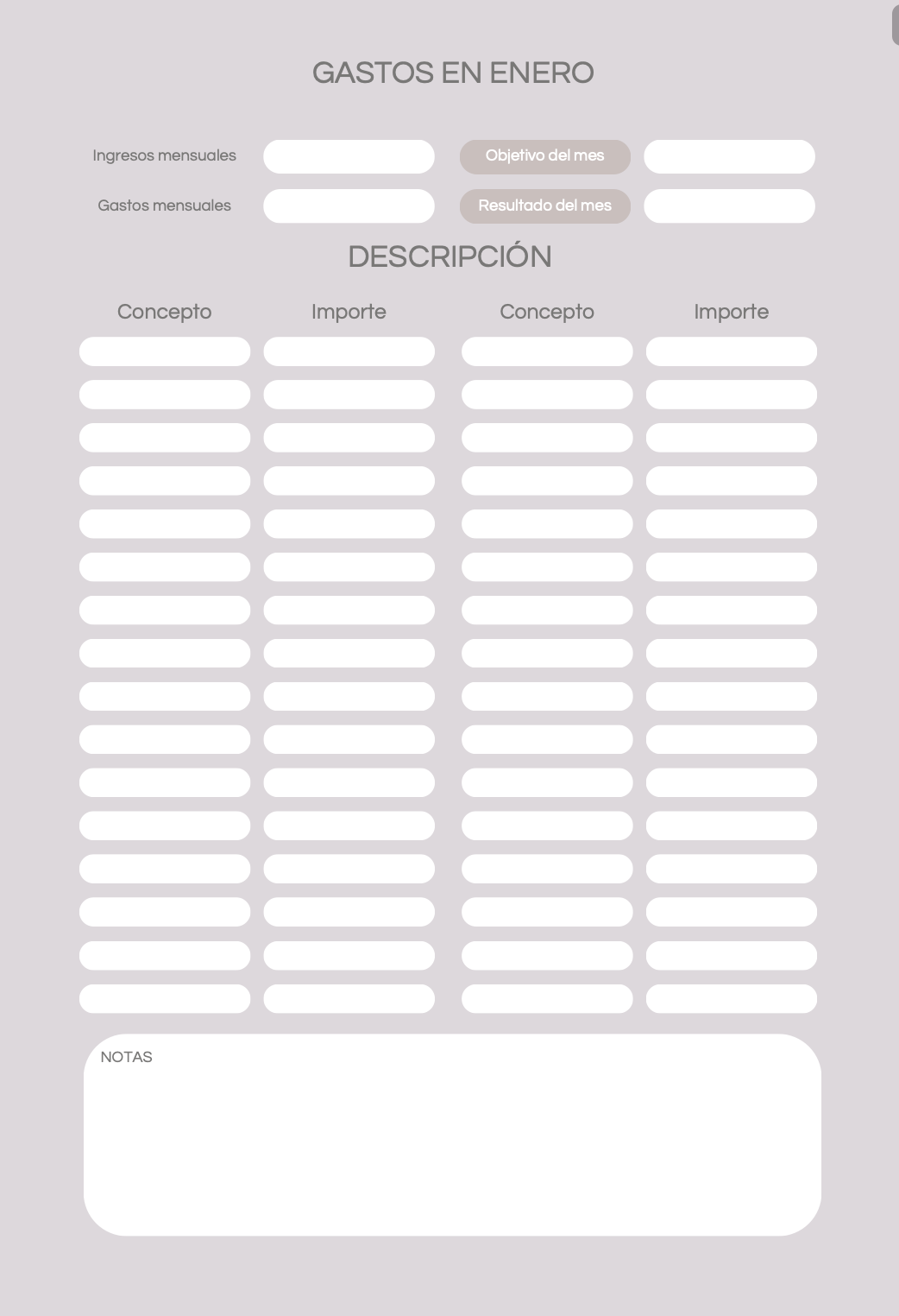 Planificación Completa: Incluye planificación mensual, semanal y diaria, además de control de gastos.